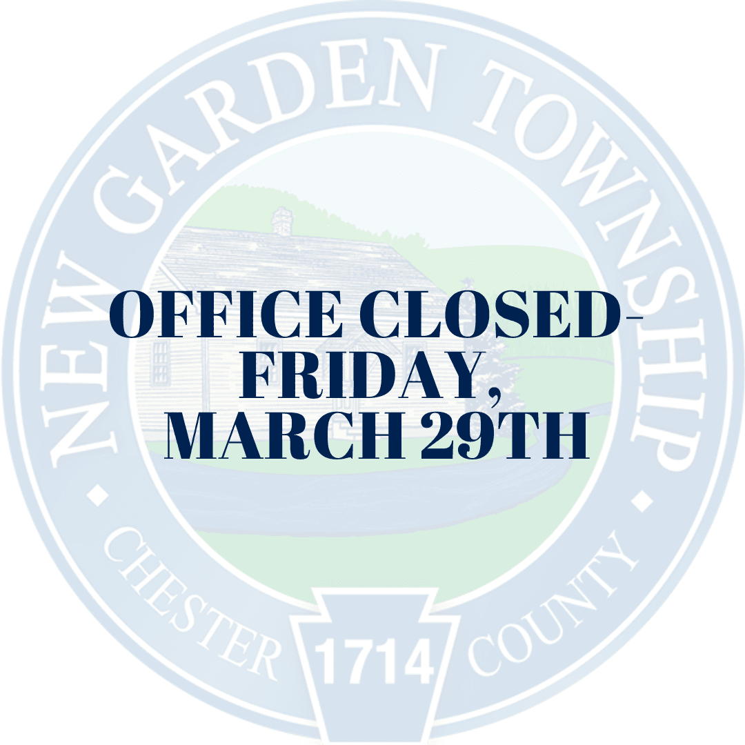 The Township administrative building will be closed on Friday, March 29th, 2024, due to the Good Friday holiday. We will be back to normal operations on Monday, April 1st.