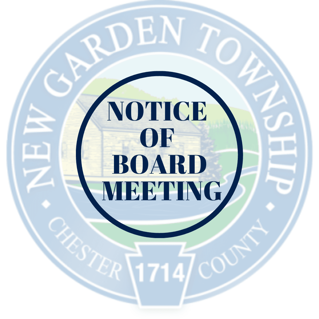 To view the Board of Supervisors, live stream on Monday, August 19th, 2024, at 7:00 p.m. please go to New Garden Township's YouTube account: https://www.youtube.com/@NewGardenTownship/streams. The meeting is also held in person at the Township Building.